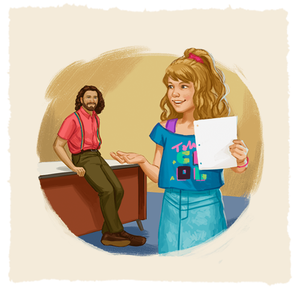 Mr. Garcia teaches Courtney’s third-grade class. He wears rainbow suspenders like Robin Williams in Mork & Mindy and has a Robin Williams-esque zaniness. He’s all about getting kids to express their unique personalities.