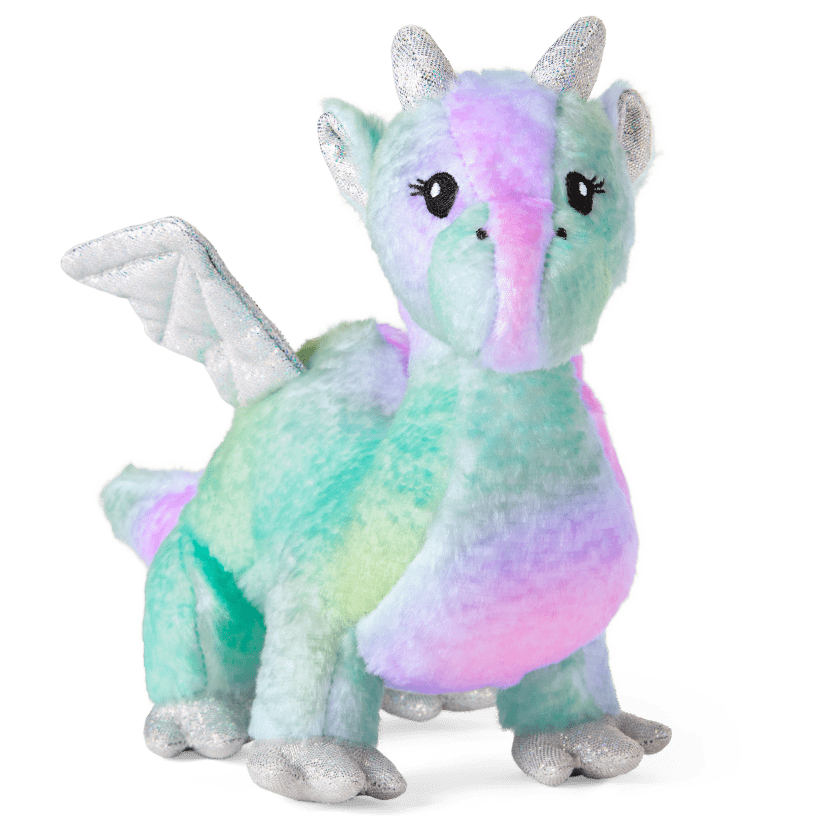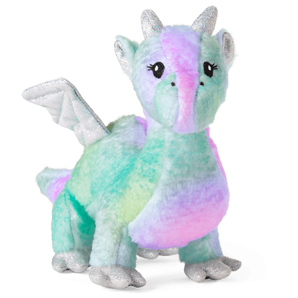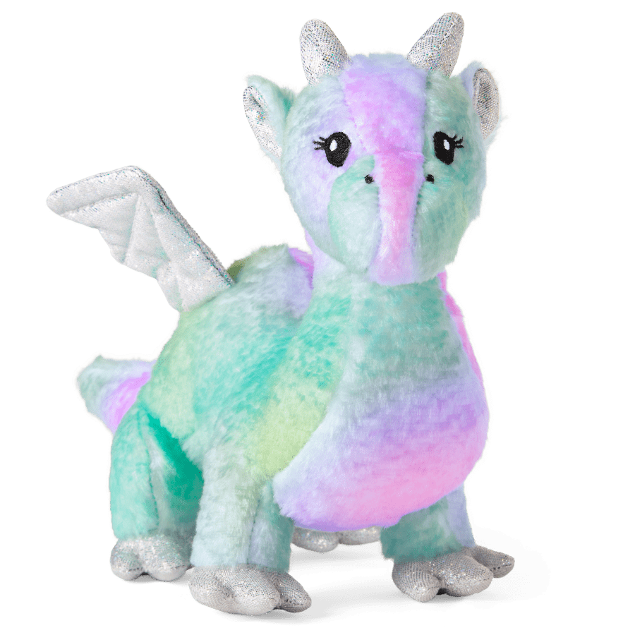 The WellieWishers have a new friend! This plush dragon has multicolored fur, an embroidered face with eyelashes, and silver iridescent wings, horns, and feet. Plus, she can pull the Magical Garden Carriage (sold separately) while the WellieWishers ride inside.
