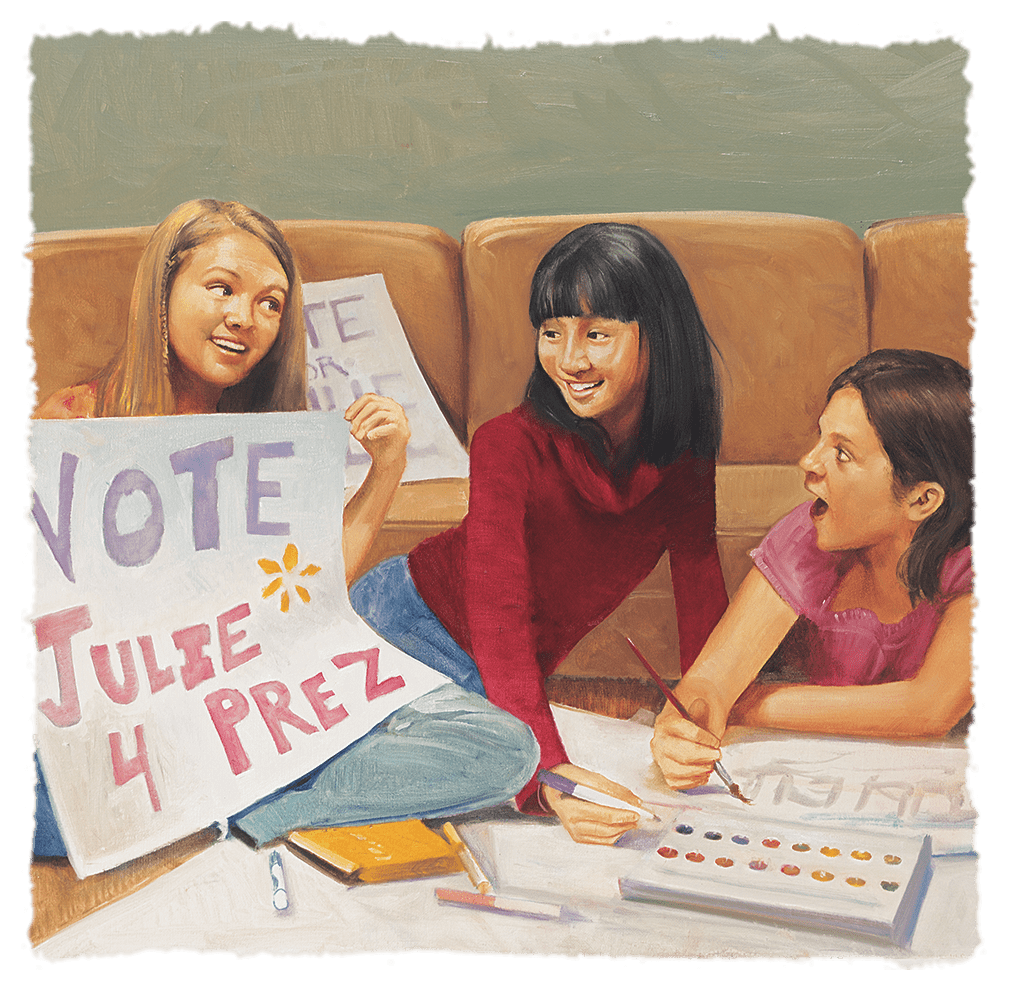 A classmate who campaigns with Julie in the school election. Joy is deaf—but not blind to the fact that some kids make fun of her. When Julie finds a way to enlighten Joy’s tormentors, Joy gains confidence and accepts Julie’s help with grace.