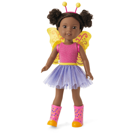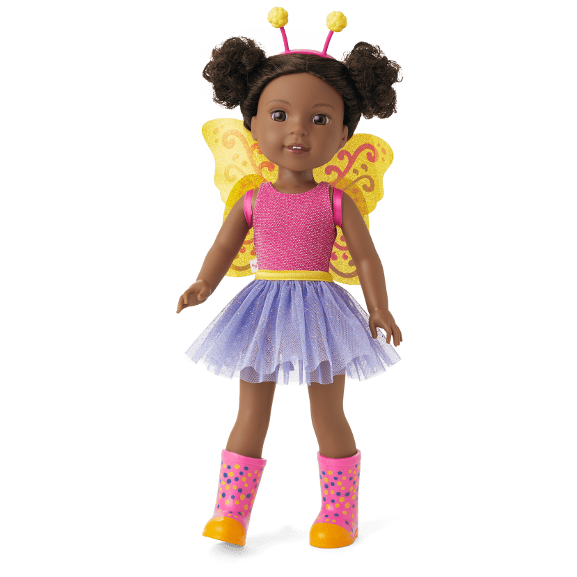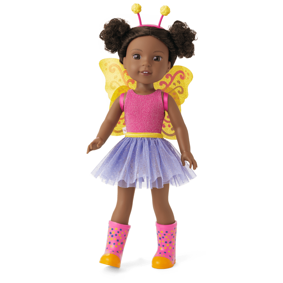 Kendall loves to be creative! You can count on her to tinker and turn upcycled objects into art for her friends. When she wears her butterfly outfit, she loves that she’s transforming herself into something sparkly and soaring. Includes: