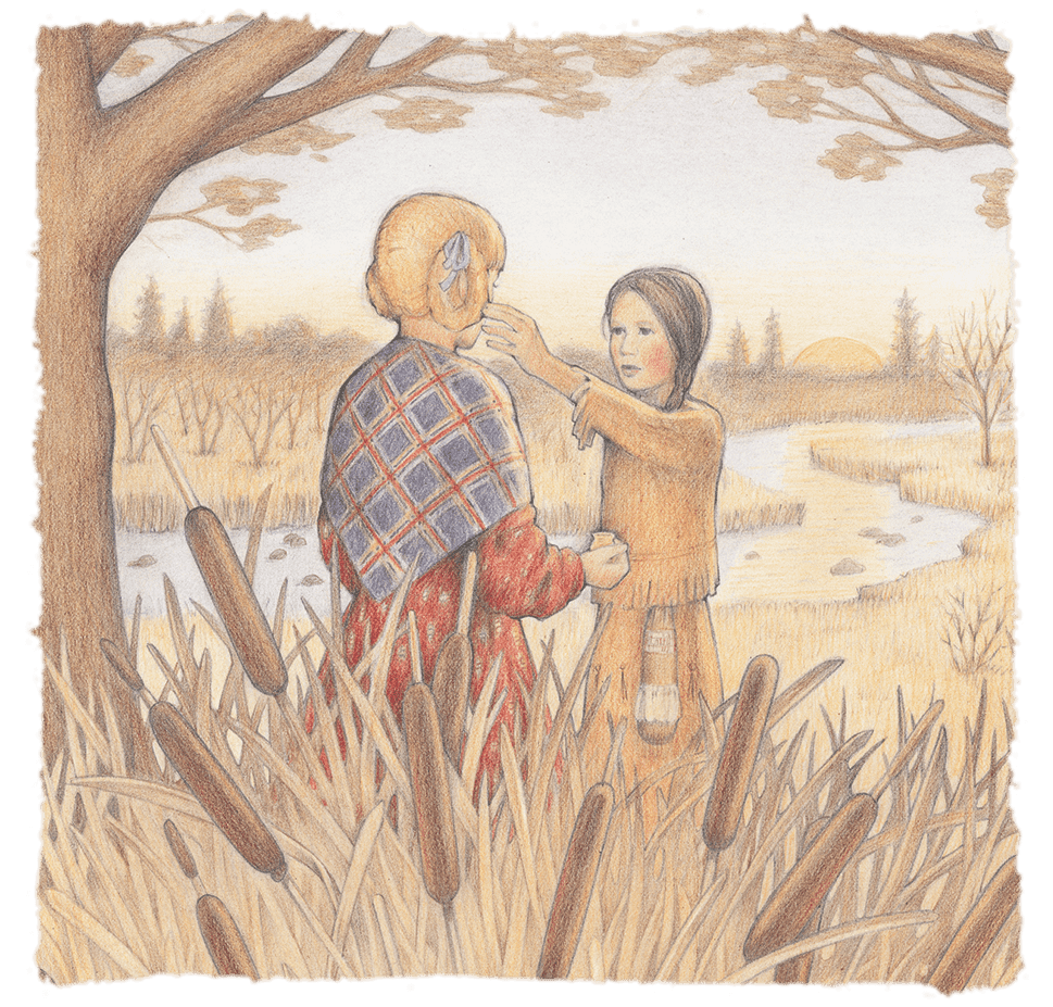 Singing Bird is Kirsten’s Dakota friend who she encounters near her house. The Dakota people were being driven out of Minnesota, and the two girls don’t speak the same language, but they still grow a friendship.
