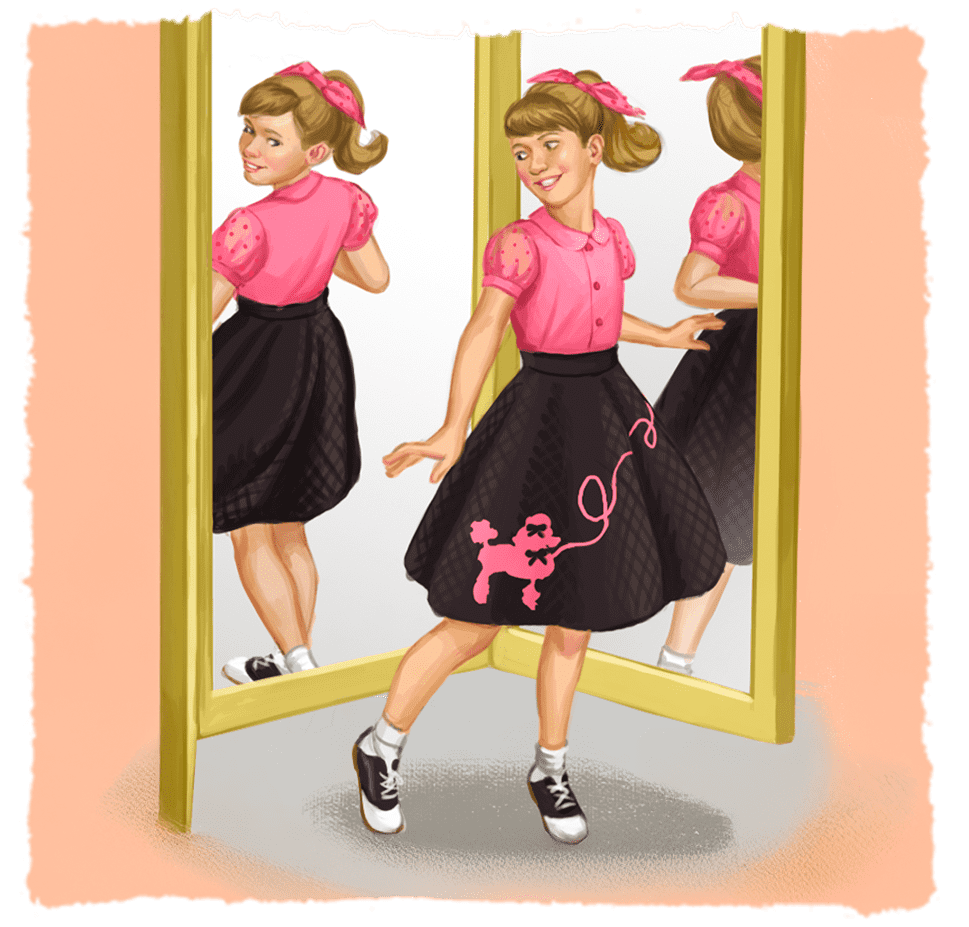 This decade saw a lot of conformity or being and acting like others. Maryellen struggled with this idea, which is why she painted her front door (and dog!) red.