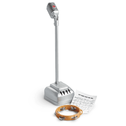 This 1960s-style microphone amplifies girls’ voices, and has buttons to press that add an echo ...