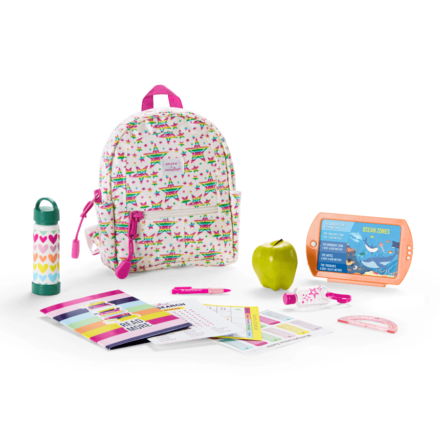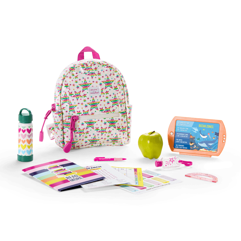 Prepare for a stellar start to the school year with this backpack for 18-inch dolls, designed in partnership with STATE Bags, plus must-have accessories that fit right inside.